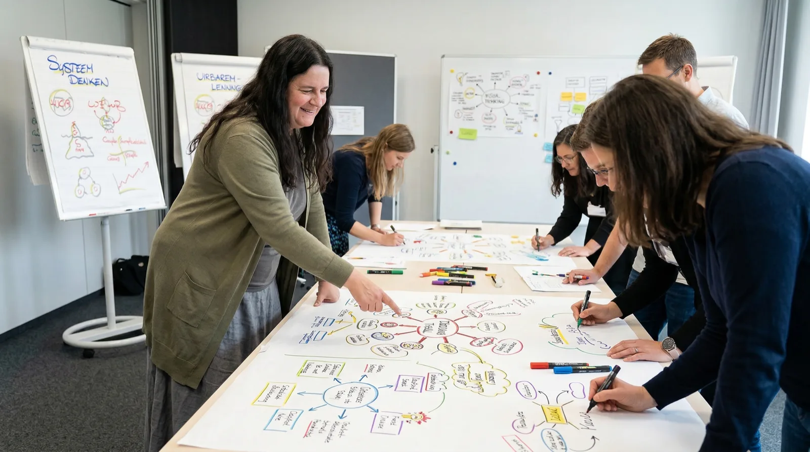 Facilitation & Systems Thinking — Visual and systemic sessions using causal loop diagrams, collaboration canvases, and structured facilitation. Getting groups unstuck and moving.