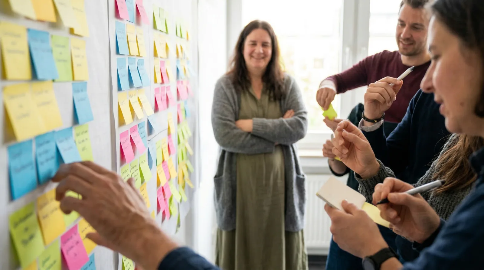 Multi-session programmes for AI adoption, leadership development, or collaboration redesign. Typically 4-8 sessions combining workshops, coaching, and follow-up. This is where the deepest change happens — because real transformation takes more than a single session.